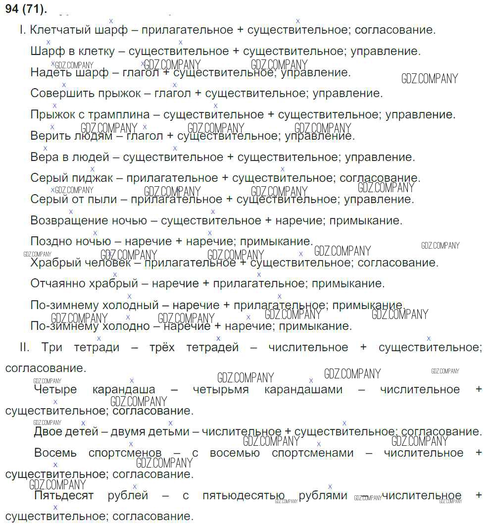 Здесь готовые ответы по Русскому языку за 8 (восьмой) класс от Бархударов, Крючков, Максимов Учебник (издательство: Просвещение от 2018 г.) № 94