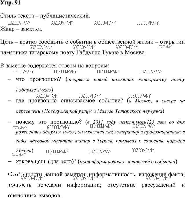 Здесь готовые ответы по Русскому языку за 8 (восьмой) класс от Быстрова, Кибирева, Воителева Учебник Инновационная школа (издательство: Русское слово от 2019 г.) № 91