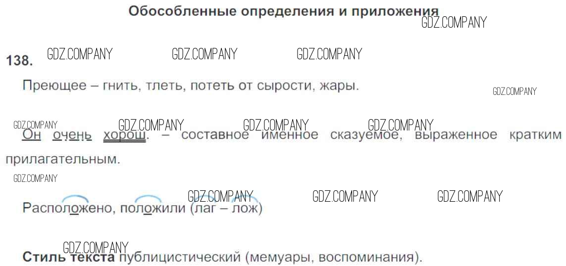 Здесь готовые ответы по Русскому языку за 8 (восьмой) класс от Кулаева Рабочая тетрадь УМК (издательство: Экзамен от 2015 г.) № 138