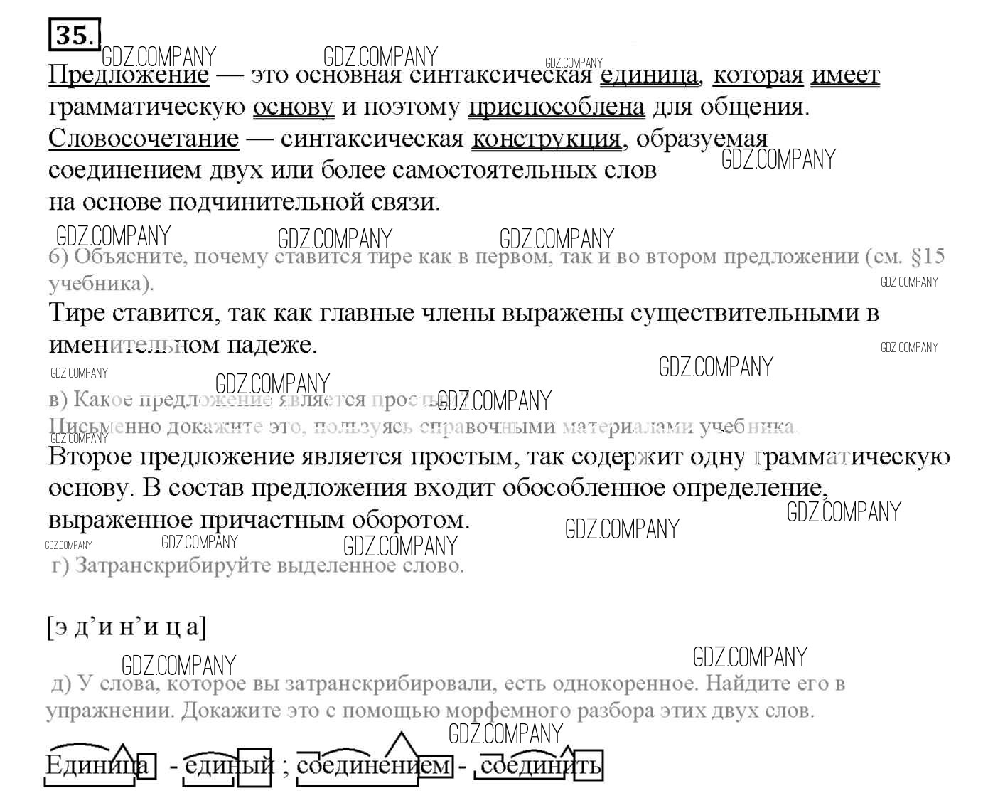 Здесь готовые ответы по Русскому языку за 8 (восьмой) класс от Львов Рабочая тетрадь УМК (издательство: Экзамен от 2016 г.) № 35