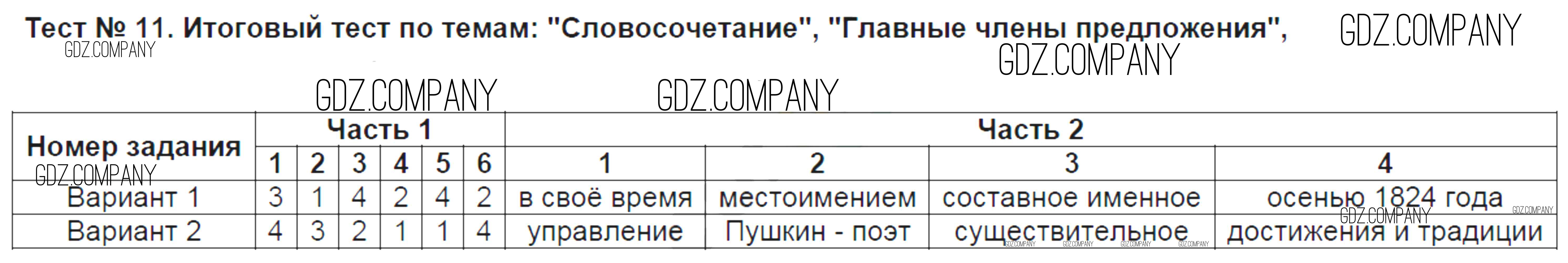 Здесь готовые ответы по Русскому языку за 8 (восьмой) класс от Никулина Контрольно-измерительные материалы (КИМ) (издательство: Экзамен от 2015 г.) № 11