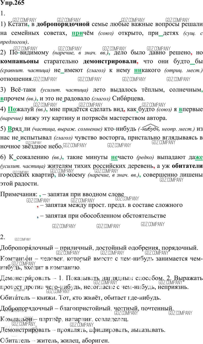 Здесь готовые ответы по Русскому языку за 8 (восьмой) класс от Разумовская, Львова, Капинос, Львов Учебник Вертикаль (издательство: Дрофа от 2013 г.) № 265