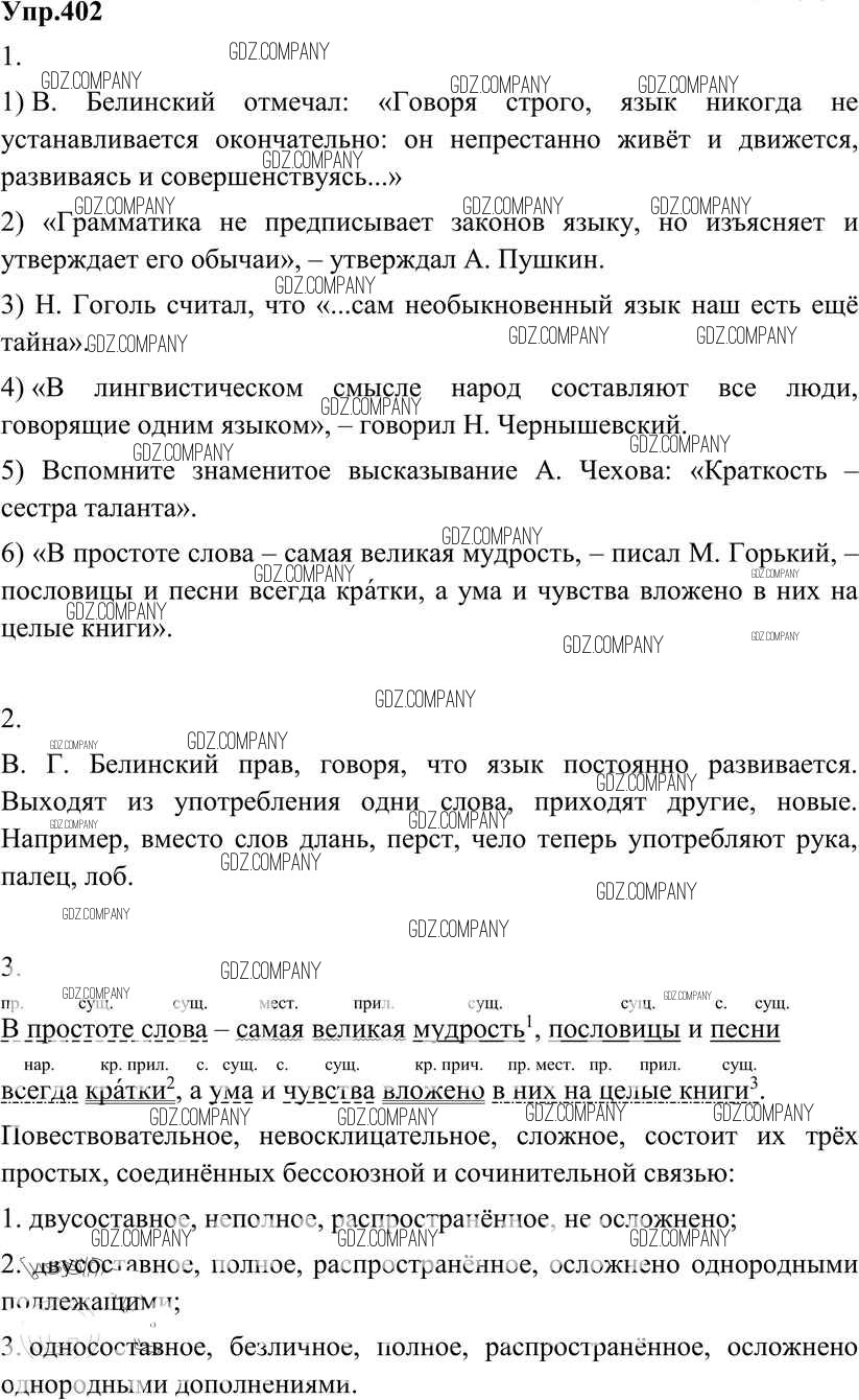 Здесь готовые ответы по Русскому языку за 8 (восьмой) класс от Разумовская, Львова, Капинос, Львов Учебник Вертикаль (издательство: Дрофа от 2013 г.) № 402