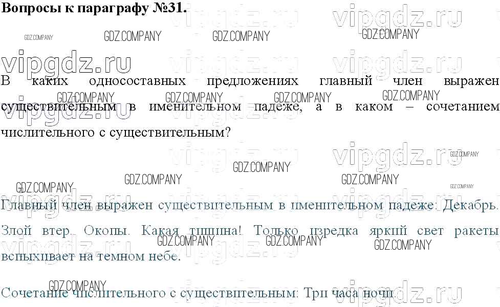 Здесь готовые ответы по Русскому языку за 8 (восьмой) класс от Тростенцова, Ладыженская, Дейкина, Александрова Учебник (издательство: Просвещение от 2014 г.) № §31