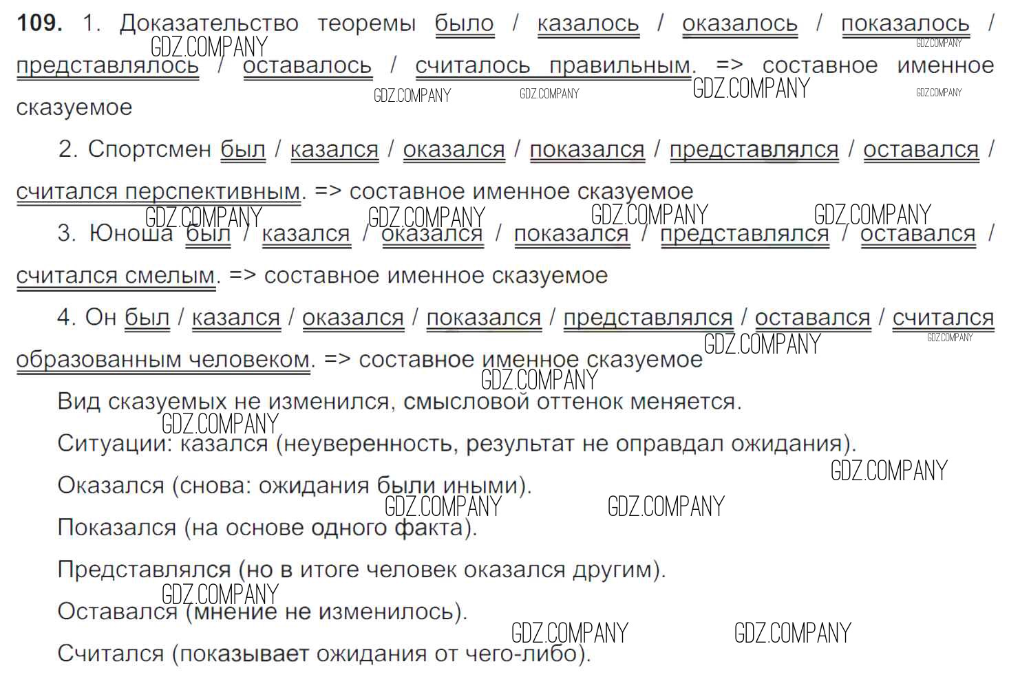 Здесь готовые ответы по Русскому языку за 8 (восьмой) класс от Тростенцова, Ладыженская, Дейкина, Александрова Учебник (издательство: Просвещение от 2014 г.) № 109