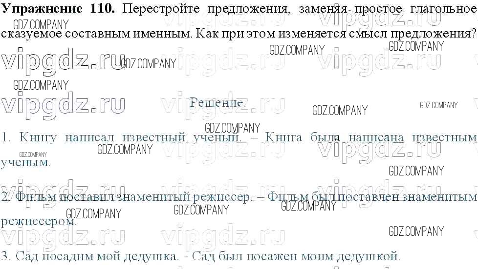 Здесь готовые ответы по Русскому языку за 8 (восьмой) класс от Тростенцова, Ладыженская, Дейкина, Александрова Учебник (издательство: Просвещение от 2014 г.) № 110