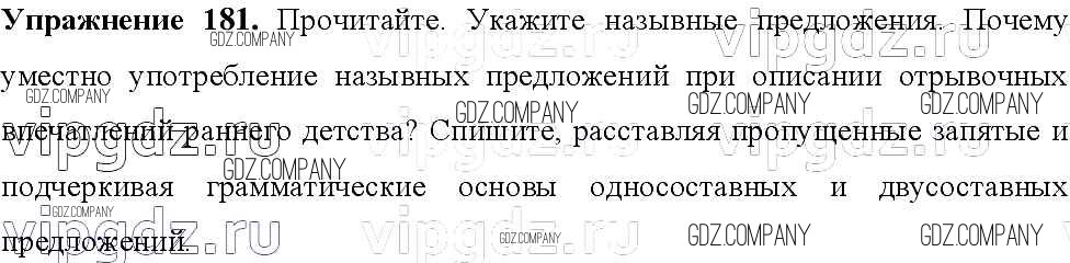 Здесь готовые ответы по Русскому языку за 8 (восьмой) класс от Тростенцова, Ладыженская, Дейкина, Александрова Учебник (издательство: Просвещение от 2014 г.) № 181