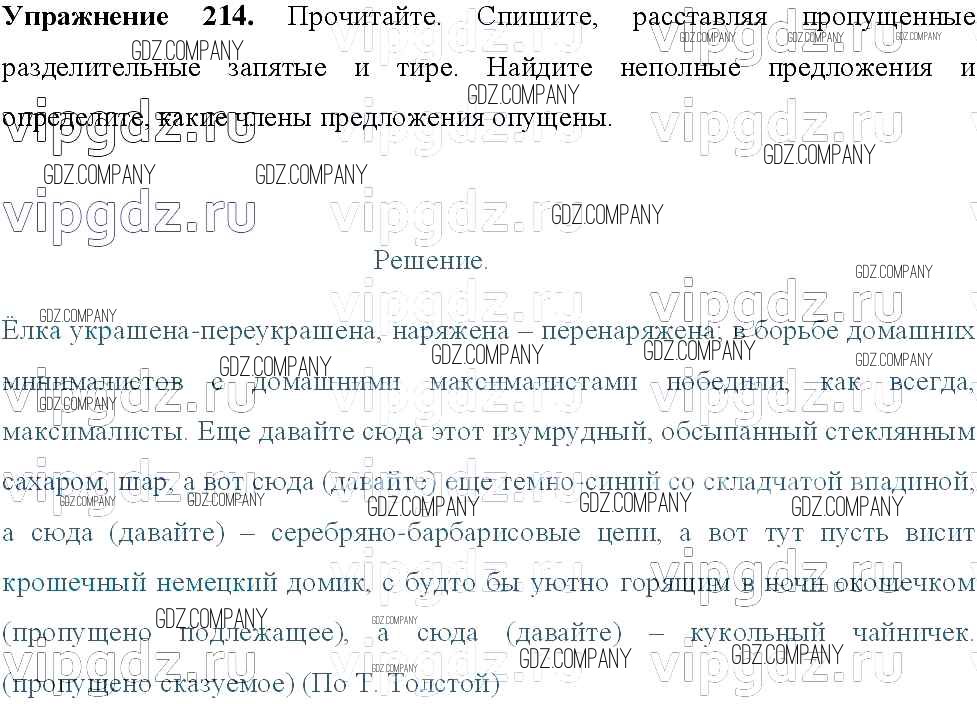 Здесь готовые ответы по Русскому языку за 8 (восьмой) класс от Тростенцова, Ладыженская, Дейкина, Александрова Учебник (издательство: Просвещение от 2014 г.) № 214