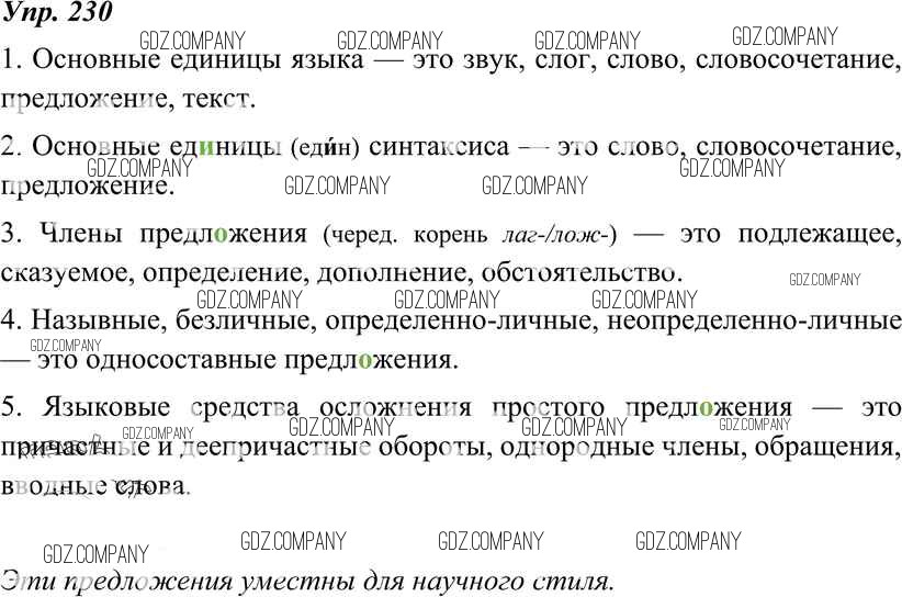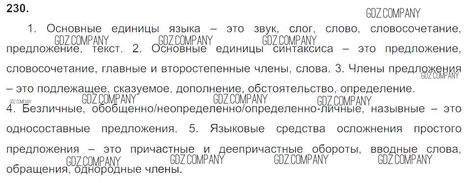 Здесь готовые ответы по Русскому языку за 8 (восьмой) класс от Тростенцова, Ладыженская, Дейкина, Александрова Учебник (издательство: Просвещение от 2014 г.) № 230