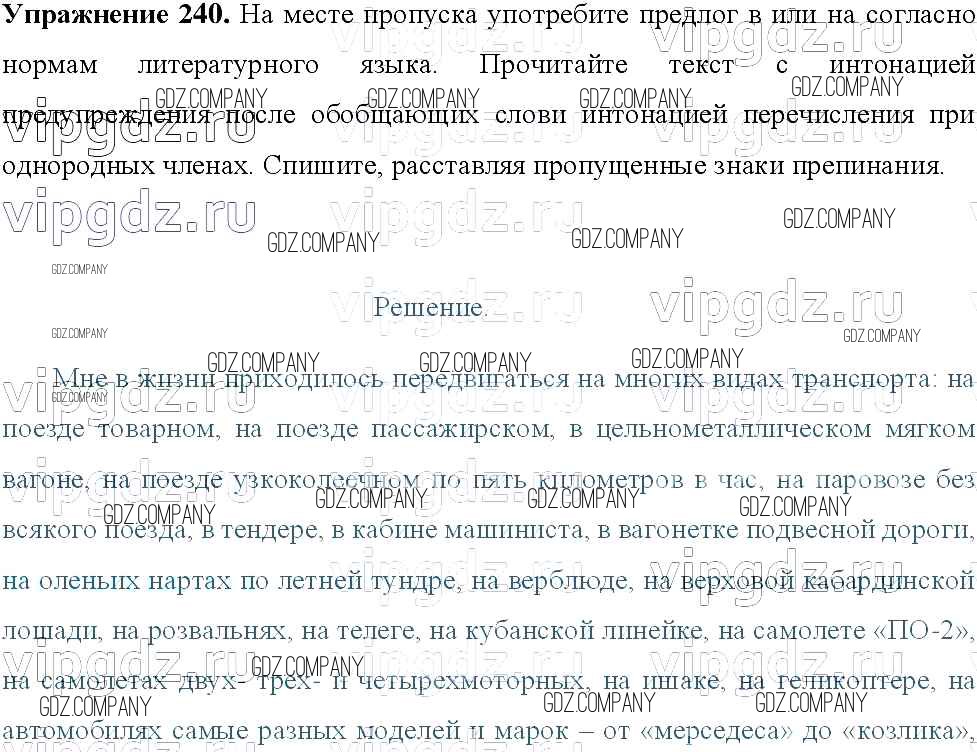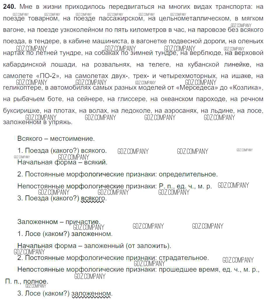 Здесь готовые ответы по Русскому языку за 8 (восьмой) класс от Тростенцова, Ладыженская, Дейкина, Александрова Учебник (издательство: Просвещение от 2014 г.) № 240