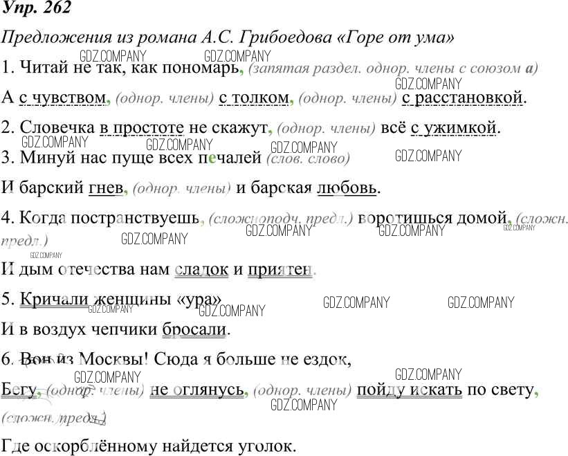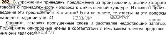 Здесь готовые ответы по Русскому языку за 8 (восьмой) класс от Тростенцова, Ладыженская, Дейкина, Александрова Учебник (издательство: Просвещение от 2014 г.) № 262