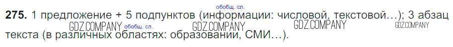 Здесь готовые ответы по Русскому языку за 8 (восьмой) класс от Тростенцова, Ладыженская, Дейкина, Александрова Учебник (издательство: Просвещение от 2014 г.) № 275