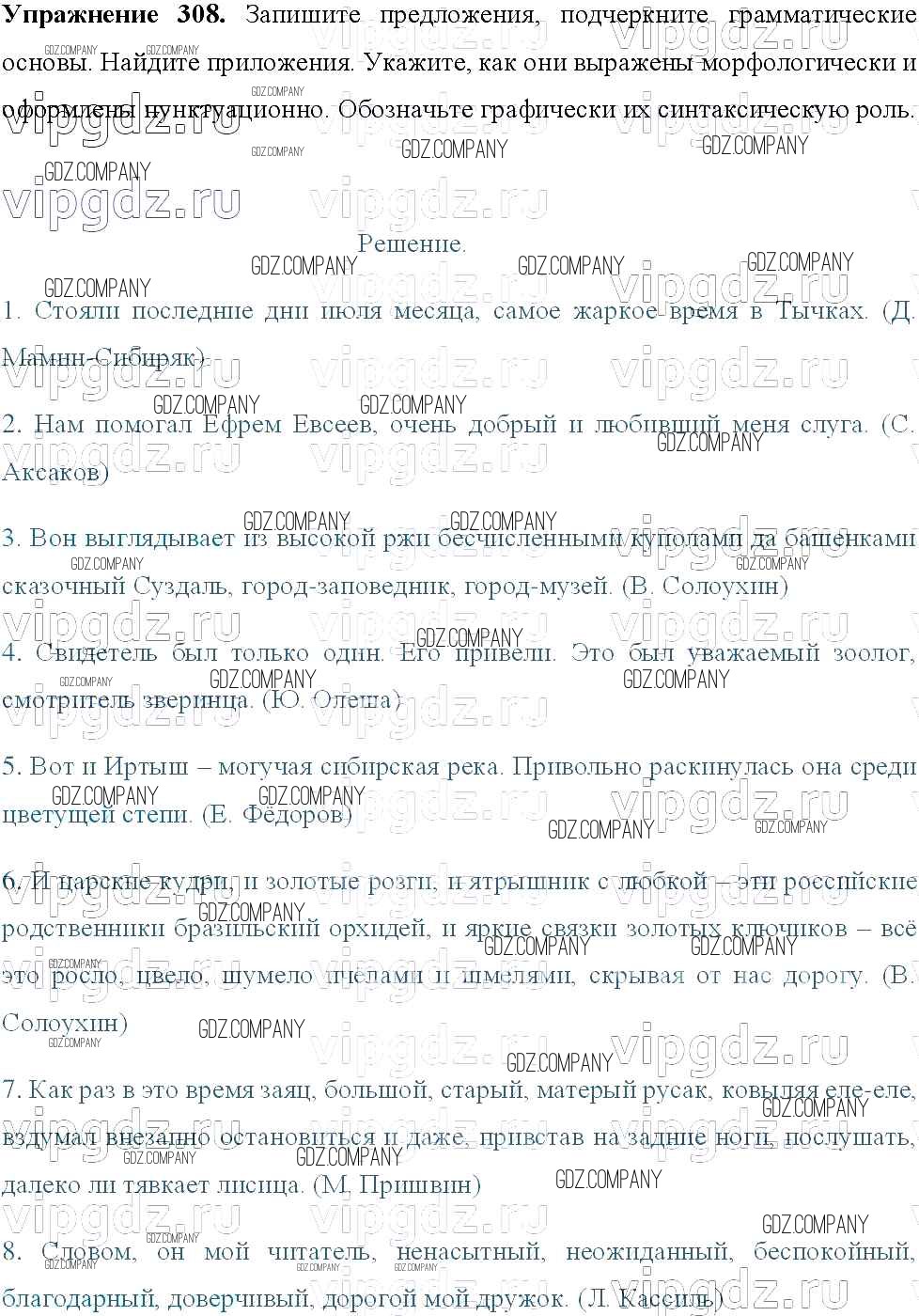 Здесь готовые ответы по Русскому языку за 8 (восьмой) класс от Тростенцова, Ладыженская, Дейкина, Александрова Учебник (издательство: Просвещение от 2014 г.) № 308