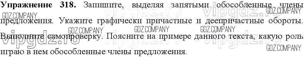Здесь готовые ответы по Русскому языку за 8 (восьмой) класс от Тростенцова, Ладыженская, Дейкина, Александрова Учебник (издательство: Просвещение от 2014 г.) № 318