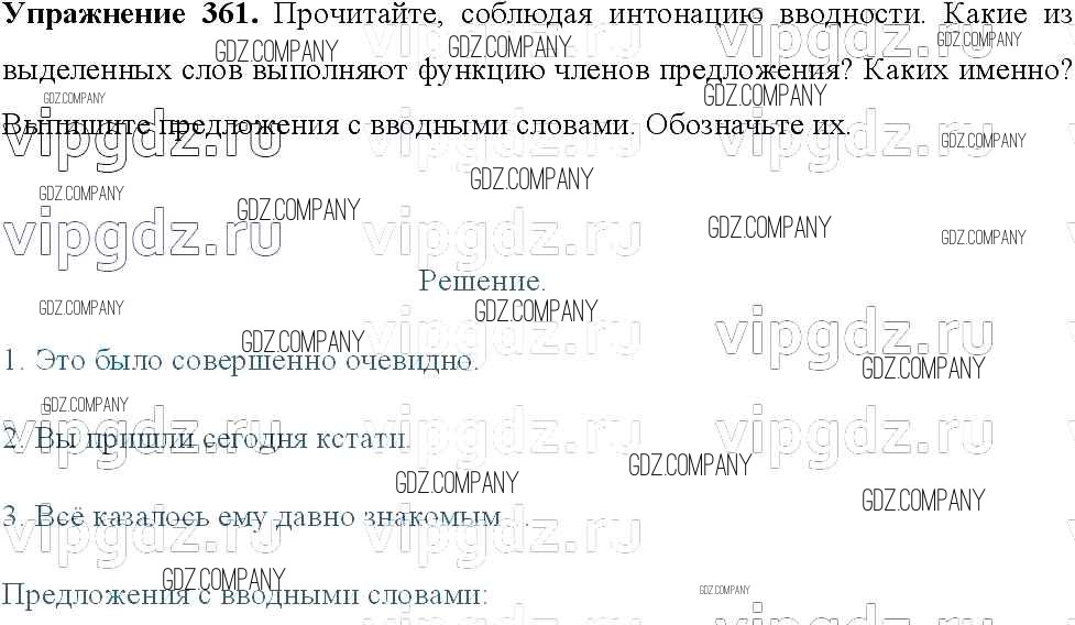 Здесь готовые ответы по Русскому языку за 8 (восьмой) класс от Тростенцова, Ладыженская, Дейкина, Александрова Учебник (издательство: Просвещение от 2014 г.) № 361