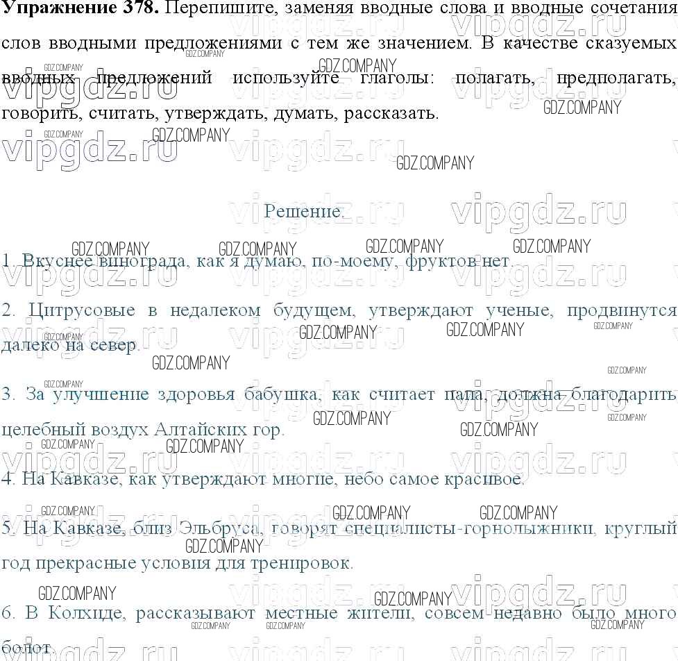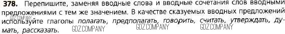 Здесь готовые ответы по Русскому языку за 8 (восьмой) класс от Тростенцова, Ладыженская, Дейкина, Александрова Учебник (издательство: Просвещение от 2014 г.) № 378