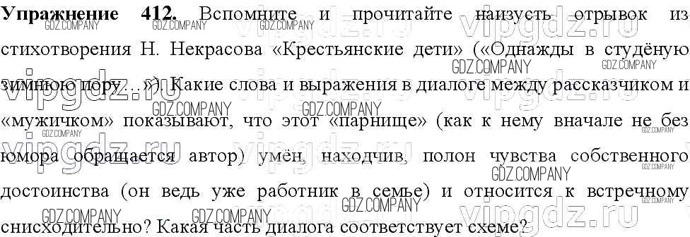 Здесь готовые ответы по Русскому языку за 8 (восьмой) класс от Тростенцова, Ладыженская, Дейкина, Александрова Учебник (издательство: Просвещение от 2014 г.) № 412