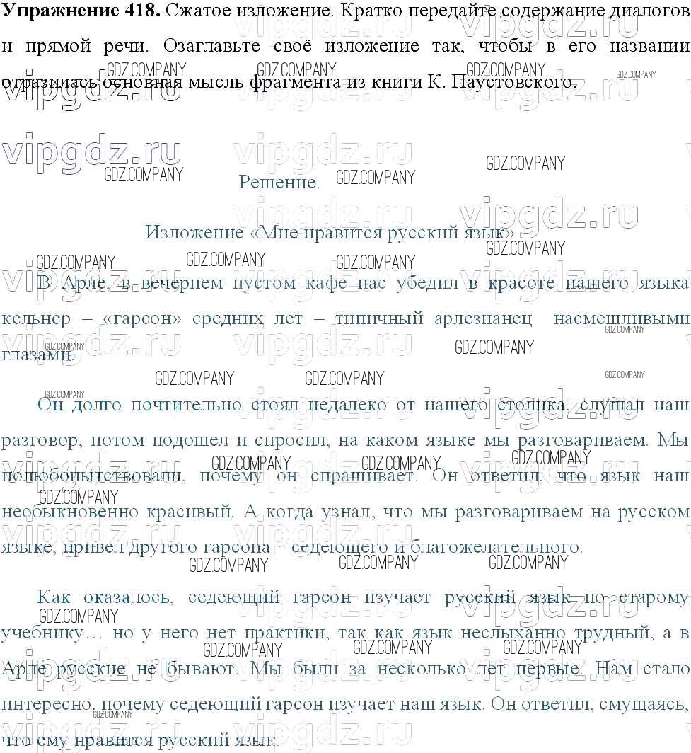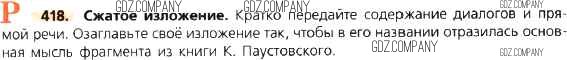 Здесь готовые ответы по Русскому языку за 8 (восьмой) класс от Тростенцова, Ладыженская, Дейкина, Александрова Учебник (издательство: Просвещение от 2014 г.) № 418