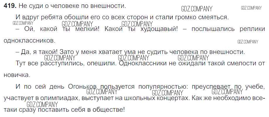 Здесь готовые ответы по Русскому языку за 8 (восьмой) класс от Тростенцова, Ладыженская, Дейкина, Александрова Учебник (издательство: Просвещение от 2014 г.) № 419