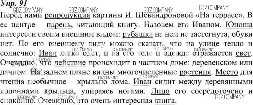 Здесь готовые ответы по Русскому языку за 8 (восьмой) класс от Тростенцова, Ладыженская, Дейкина, Александрова Учебник (издательство: Просвещение от 2014 г.) № 91