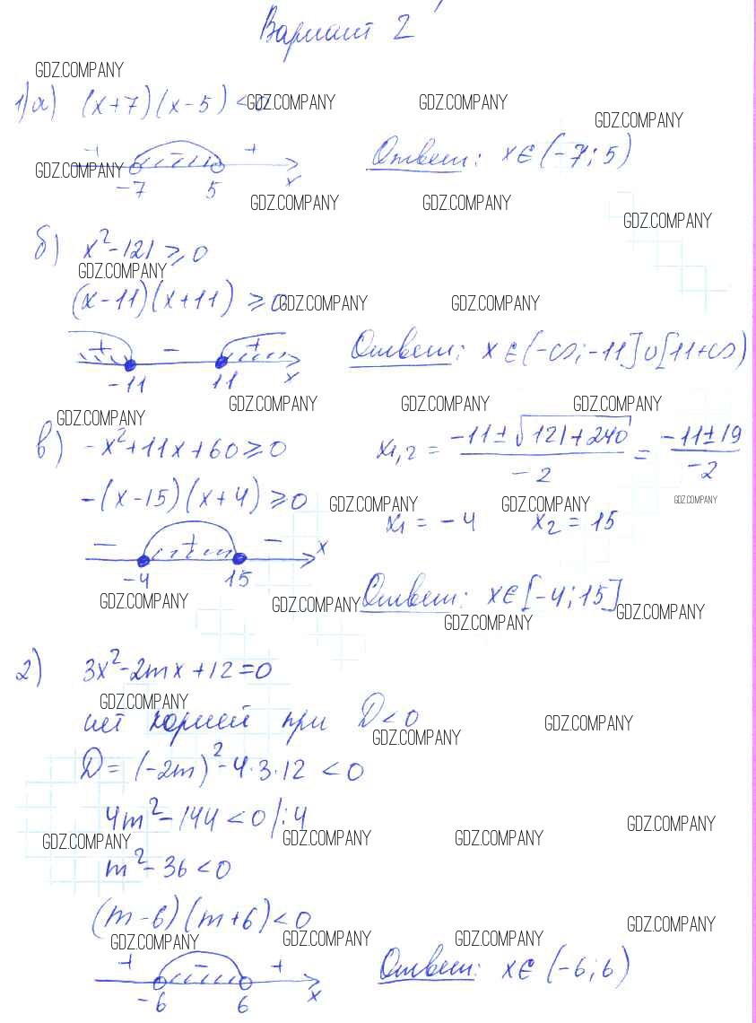 Здесь готовые ответы по Алгебре за 9 (девятый) класс от Александрова Самостоятельные работы УМК Базовый уровень (издательство: Мнемозина от 2016 г.) № вариант 2 Базовый уровень