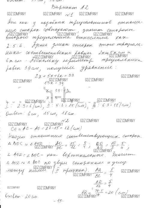 геометрия / к учебнику Погорелова / контрольная работа / кр-1. вариант / А2