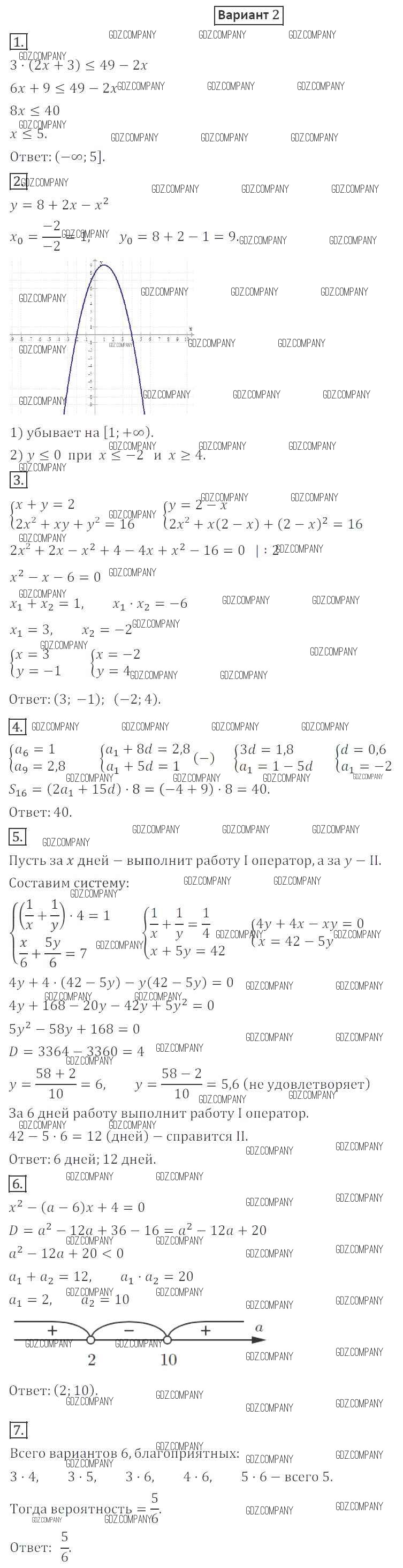 Здесь готовые ответы по Алгебре за 9 (девятый) класс от Мерзляк, Полонский, Рабинович Дидактические материалы Алгоритм успеха (издательство: Вентана-граф от 2017 г.) № 2