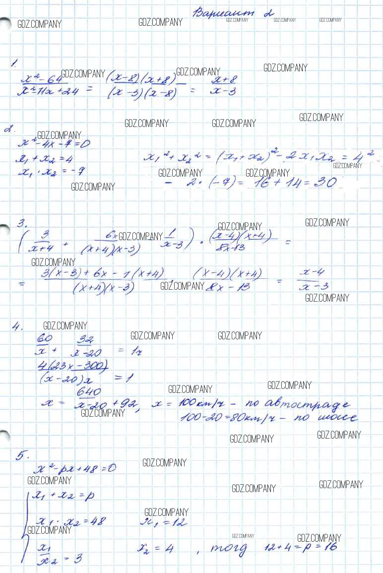 Здесь готовые ответы по Алгебре за 9 (седьмой) класс от Мордкович Контрольные работы Углубленный уровень (издательство: Мнемозина от 2016 г.) № 2 Углубленный уровень