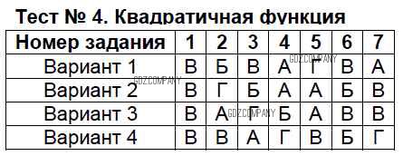 Здесь готовые ответы по Алгебре за 9 (седьмой) класс от Мордкович, Тульчинкая Тесты Базовый уровень (издательство: Мнемозина от 2013 г.) № Тест 4 Базовый уровень