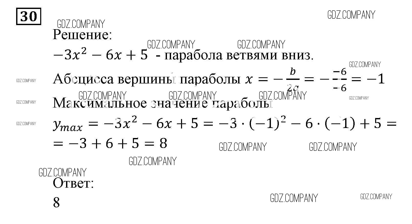 Здесь готовые ответы по Алгебре за 9 (девятый) класс от Мордкович, Александрова, Мишустина, Тульчинская, Семёнов Задачник (издательство: Мнемозина от 2010 г.) № 30