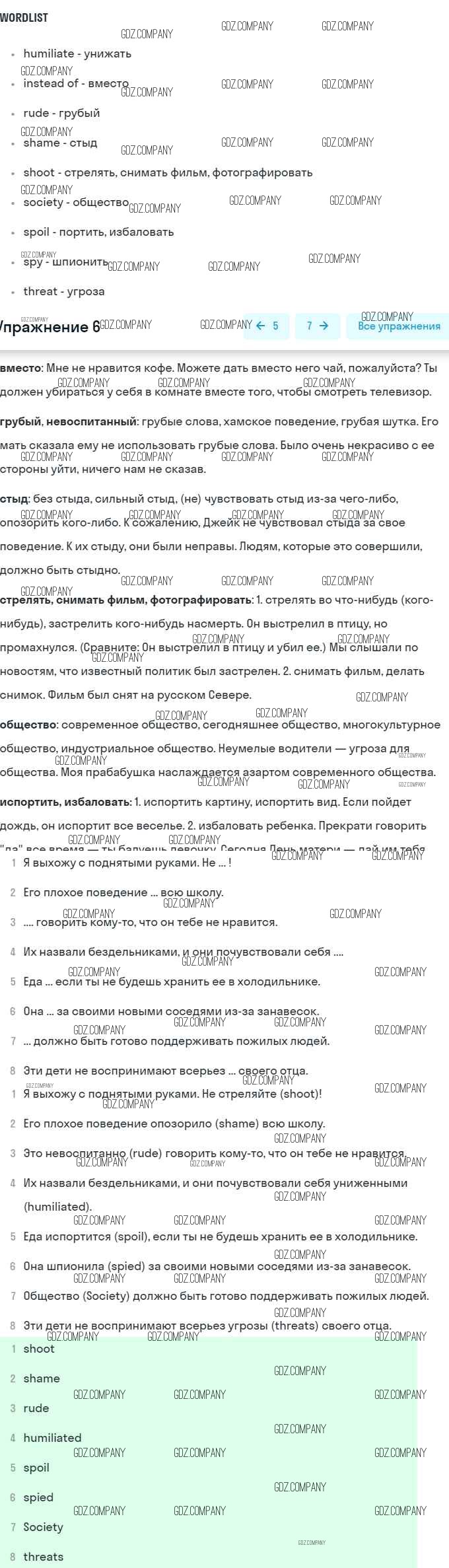Здесь готовые ответы по Английскому языку за 9 (девятый) класс от Афанасьева, Михеева, Баранова Учебник Rainbow (издательство: Дрофа от 2017 г.) № 6