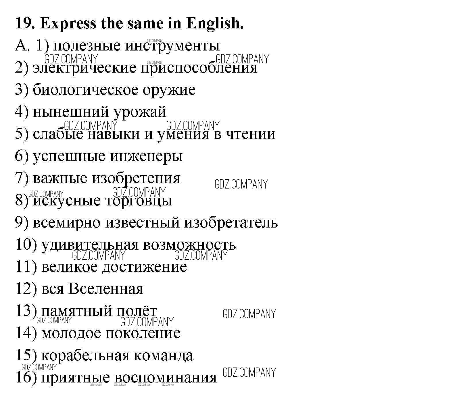 Здесь готовые ответы по Английскому языку за 9 (девятый) класс от Афанасьева, Михеева Рабочая тетрадь Новый курс (издательство: Дрофа от 2014 г.) № 19