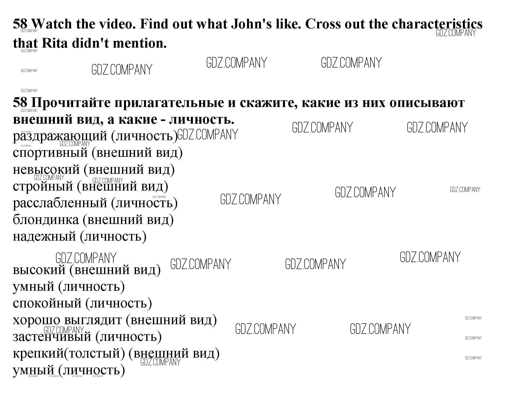 Здесь готовые ответы по Английскому языку за 9 (девятый) класс от Биболетова, Бабушис, Кларк, Морозова Учебник Enjoy English (издательство: Титул от 2014 г.) № 58