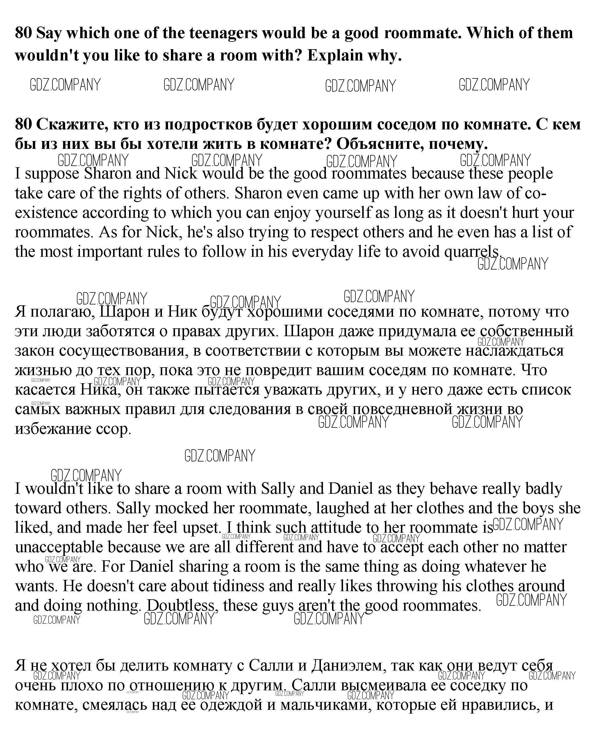 Здесь готовые ответы по Английскому языку за 9 (девятый) класс от Биболетова, Бабушис, Кларк, Морозова Учебник Enjoy English (издательство: Титул от 2014 г.) № 80