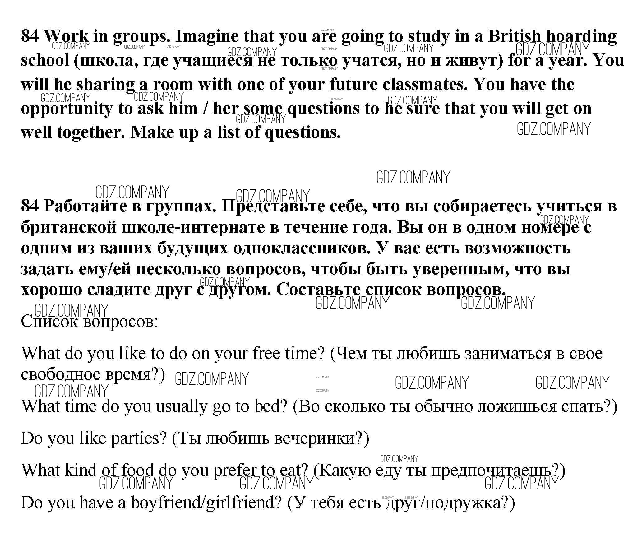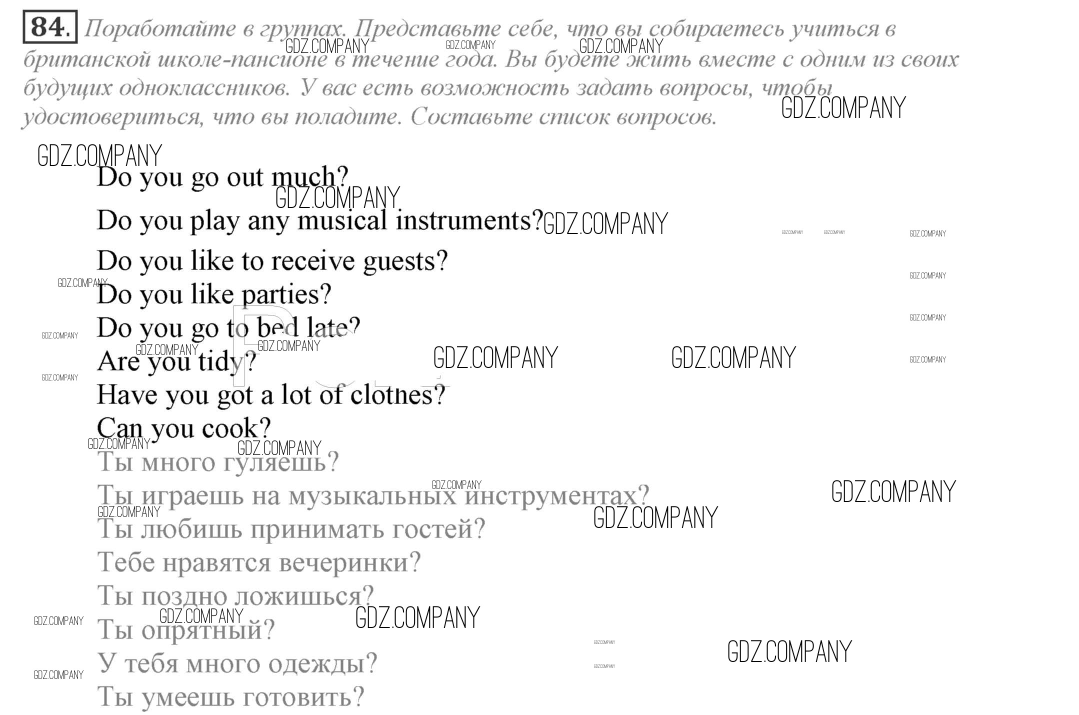 Здесь готовые ответы по Английскому языку за 9 (девятый) класс от Биболетова, Бабушис, Кларк, Морозова Учебник Enjoy English (издательство: Титул от 2014 г.) № 84