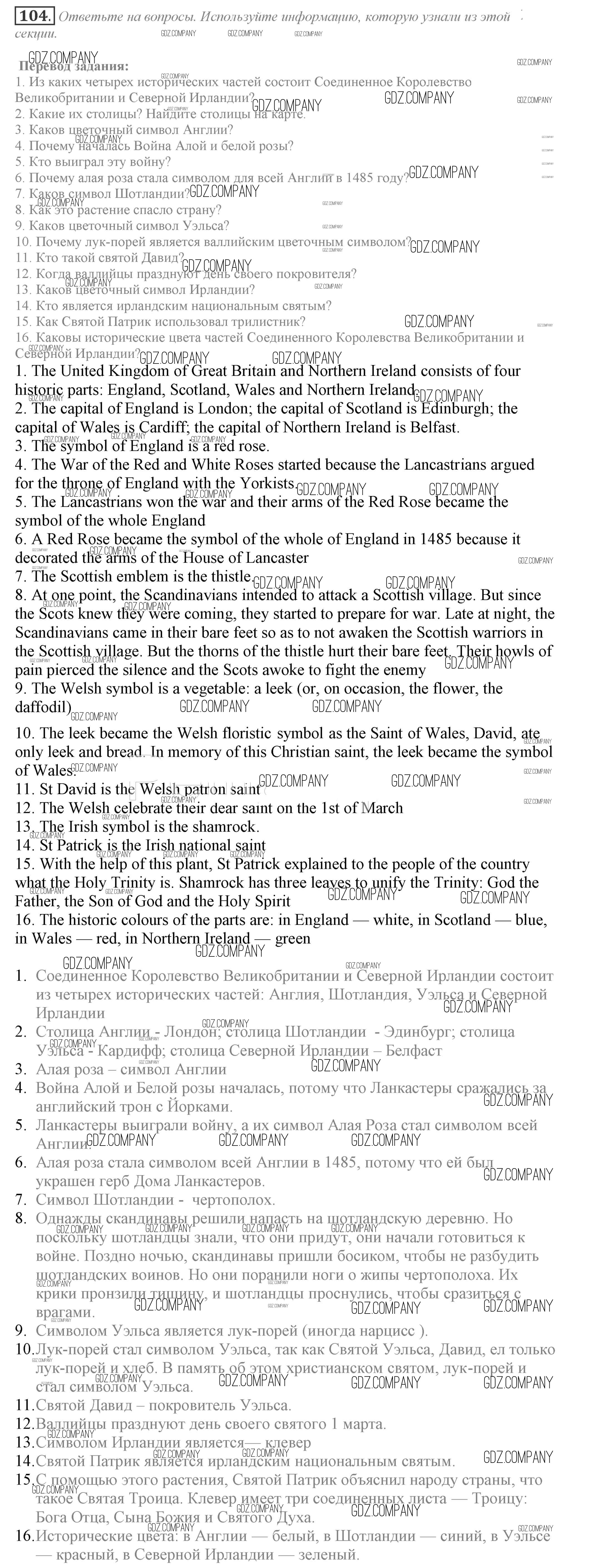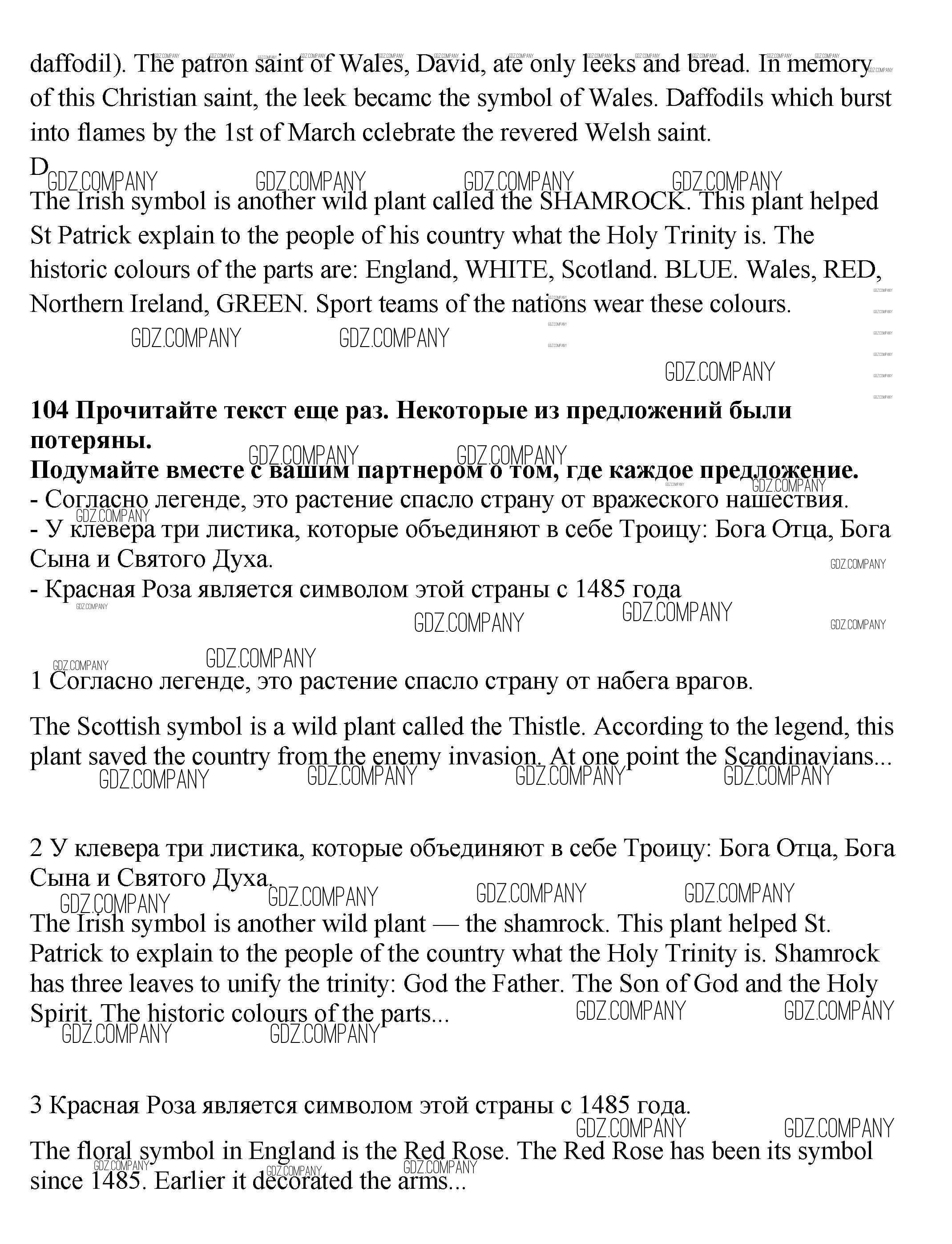 Здесь готовые ответы по Английскому языку за 9 (девятый) класс от Биболетова, Бабушис, Кларк, Морозова Учебник Enjoy English (издательство: Титул от 2014 г.) № 104