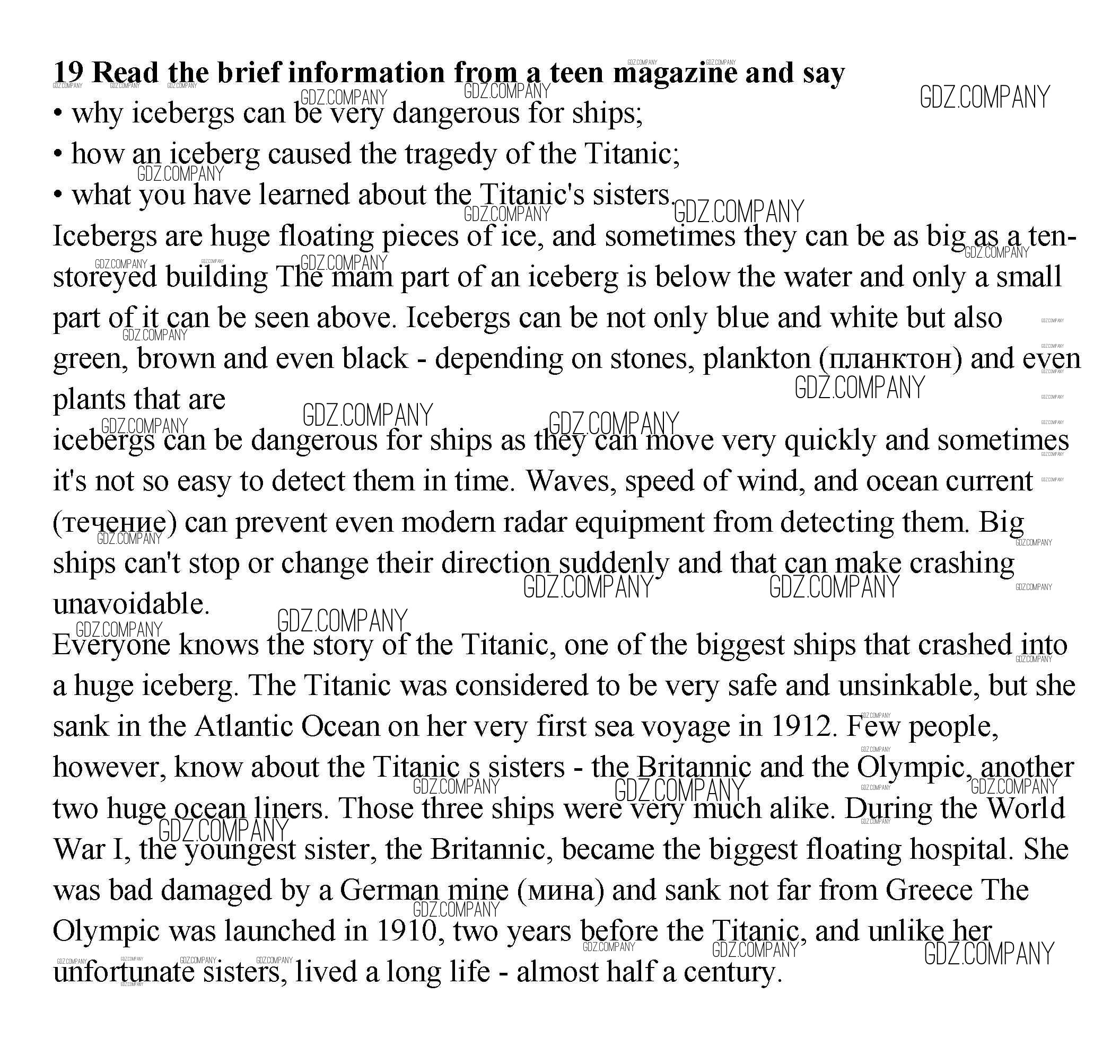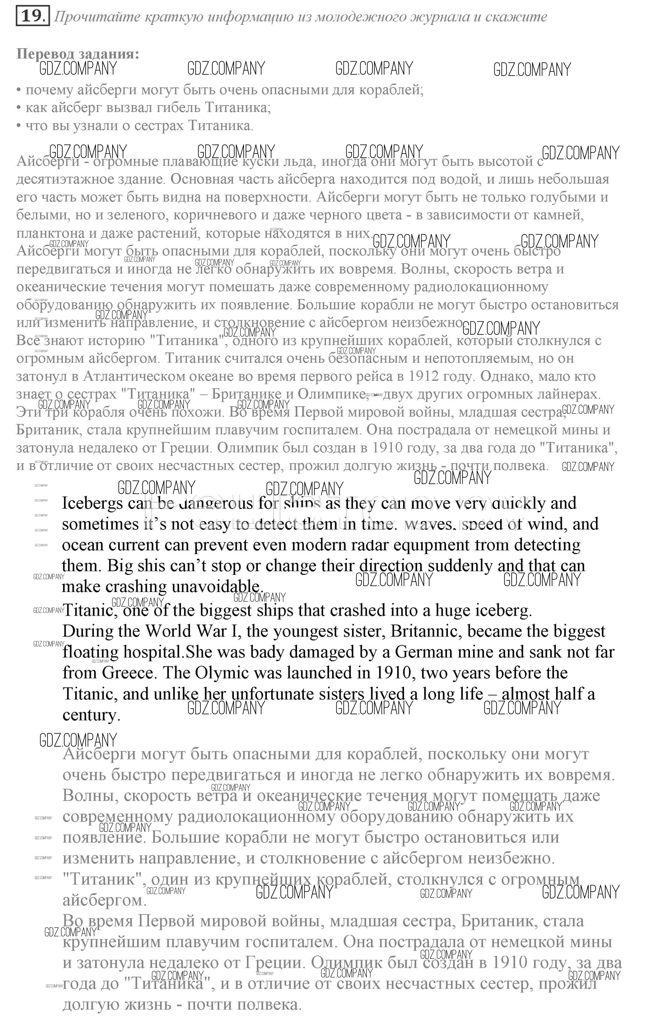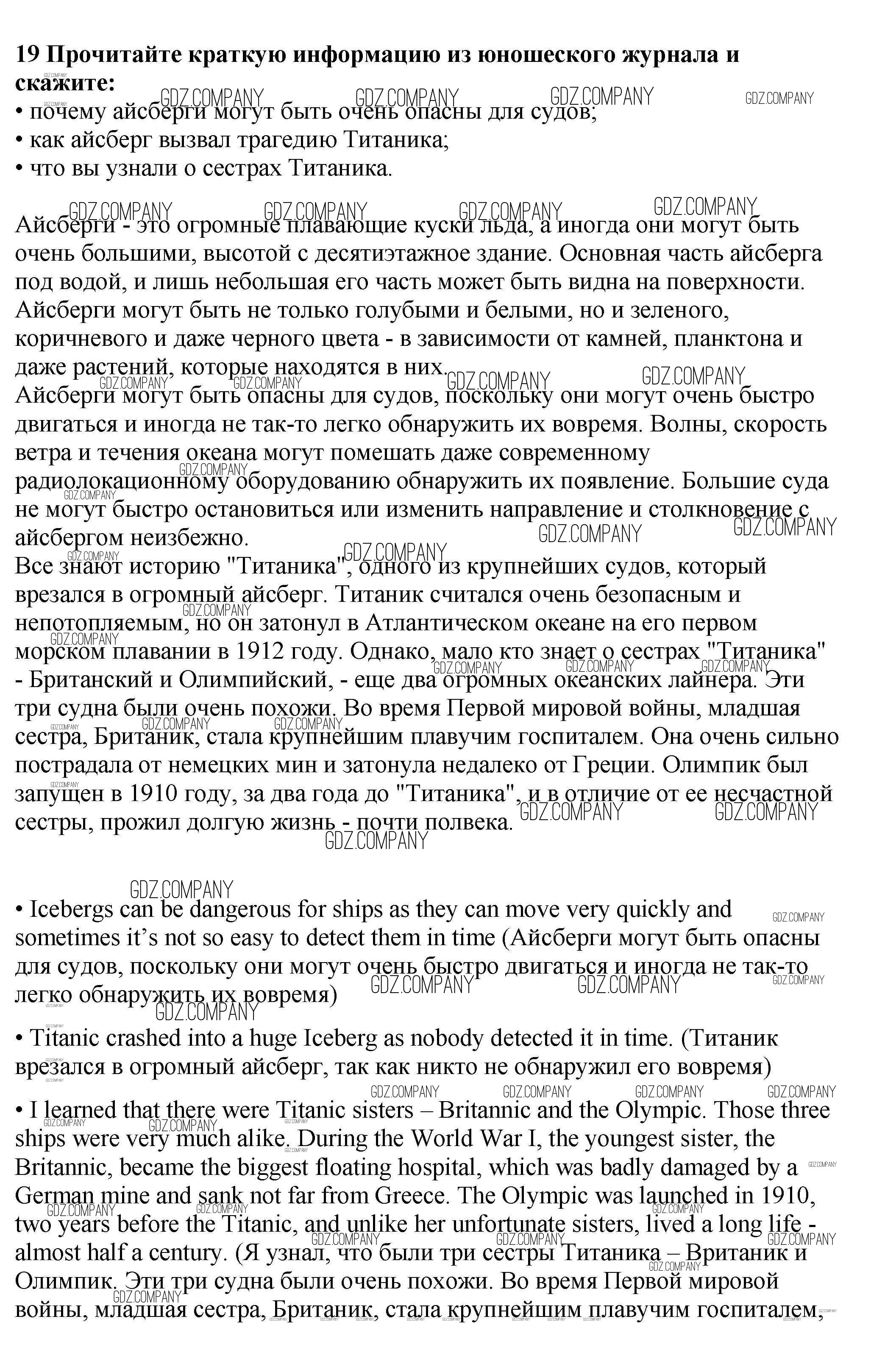 Здесь готовые ответы по Английскому языку за 9 (девятый) класс от Биболетова, Бабушис, Кларк, Морозова Учебник Enjoy English (издательство: Титул от 2014 г.) № 19