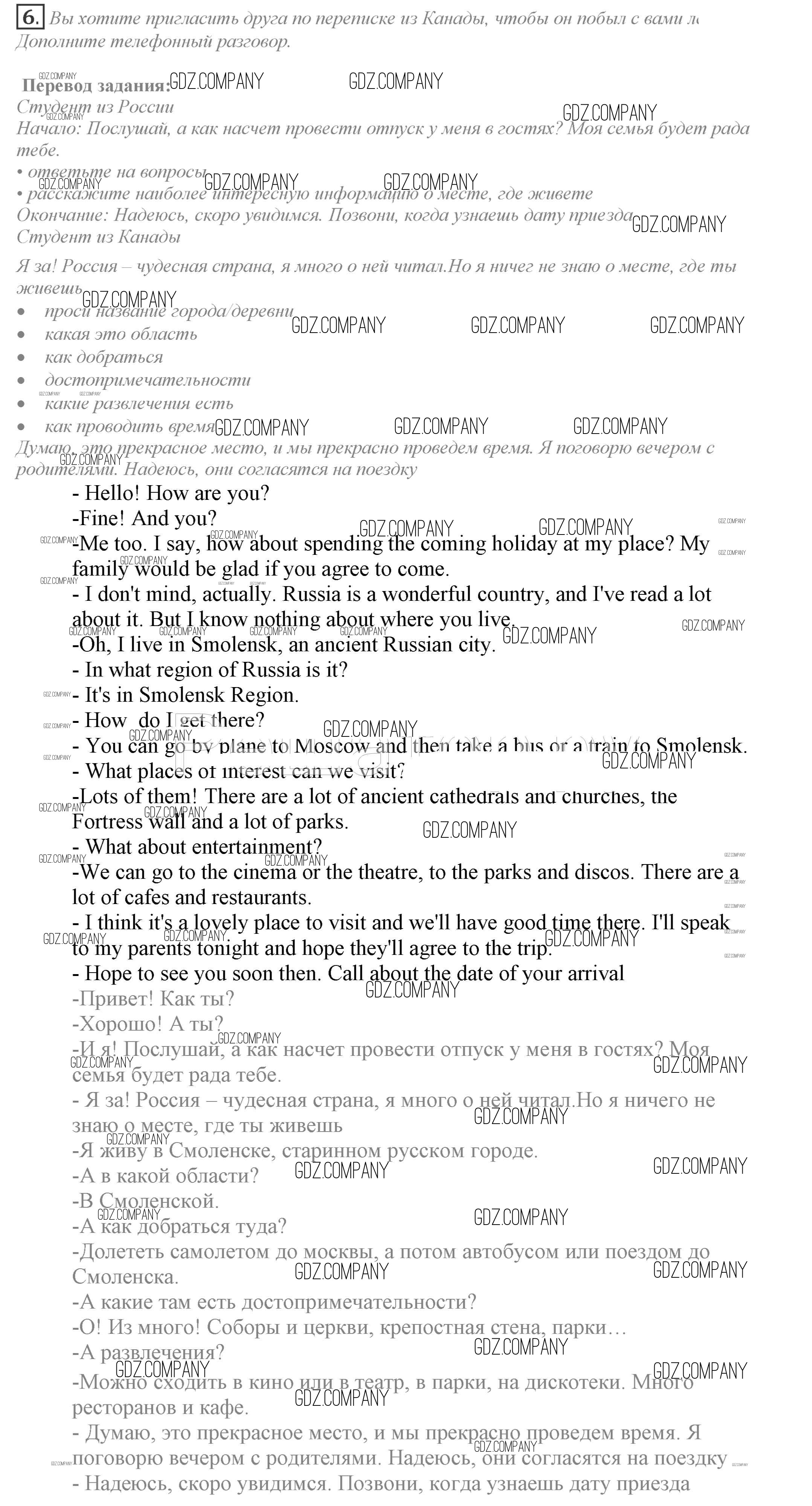 Здесь готовые ответы по Английскому языку за 9 (девятый) класс от Биболетова, Бабушис, Кларк, Морозова Учебник Enjoy English (издательство: Титул от 2014 г.) № 6