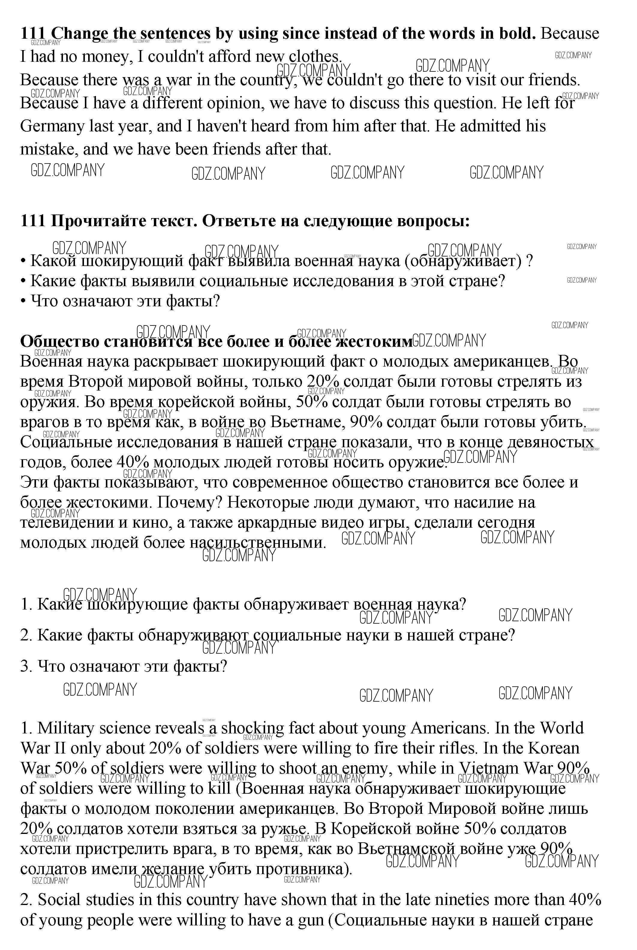 Здесь готовые ответы по Английскому языку за 9 (девятый) класс от Биболетова, Бабушис, Кларк, Морозова Учебник Enjoy English (издательство: Титул от 2014 г.) № 111