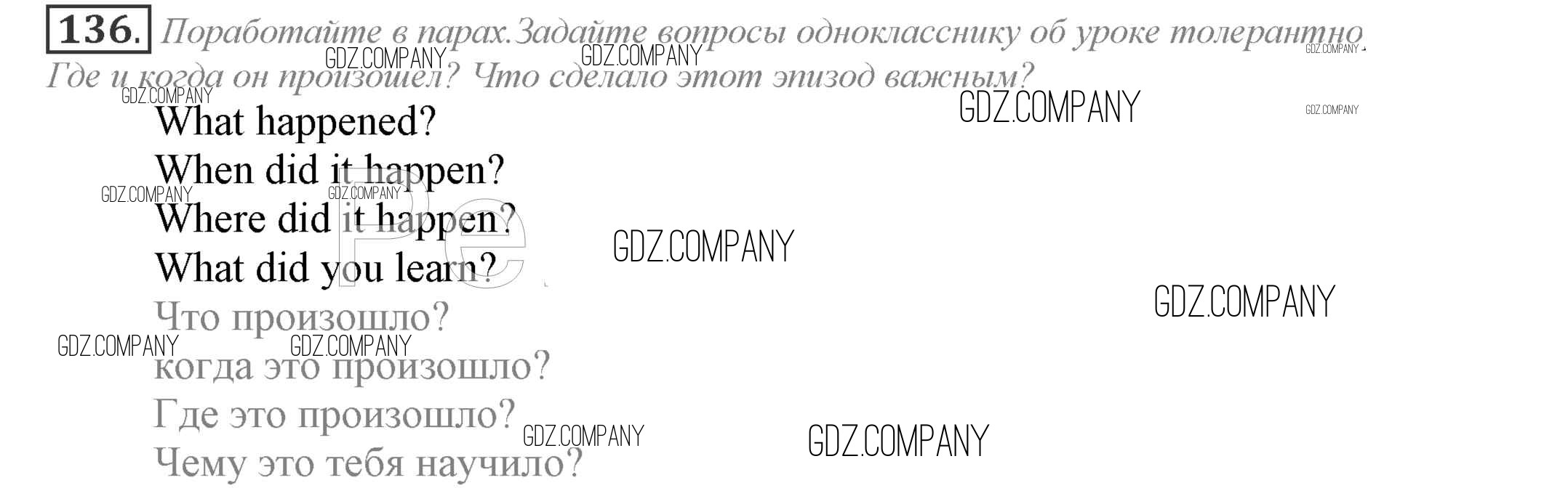 Здесь готовые ответы по Английскому языку за 9 (девятый) класс от Биболетова, Бабушис, Кларк, Морозова Учебник Enjoy English (издательство: Титул от 2014 г.) № 136
