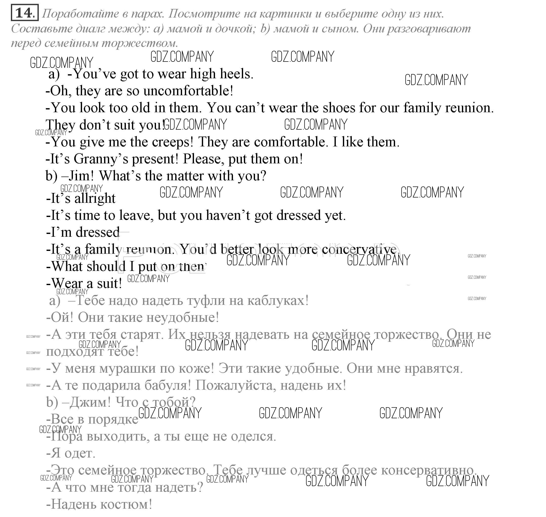 Здесь готовые ответы по Английскому языку за 9 (девятый) класс от Биболетова, Бабушис, Кларк, Морозова Учебник Enjoy English (издательство: Титул от 2014 г.) № 14