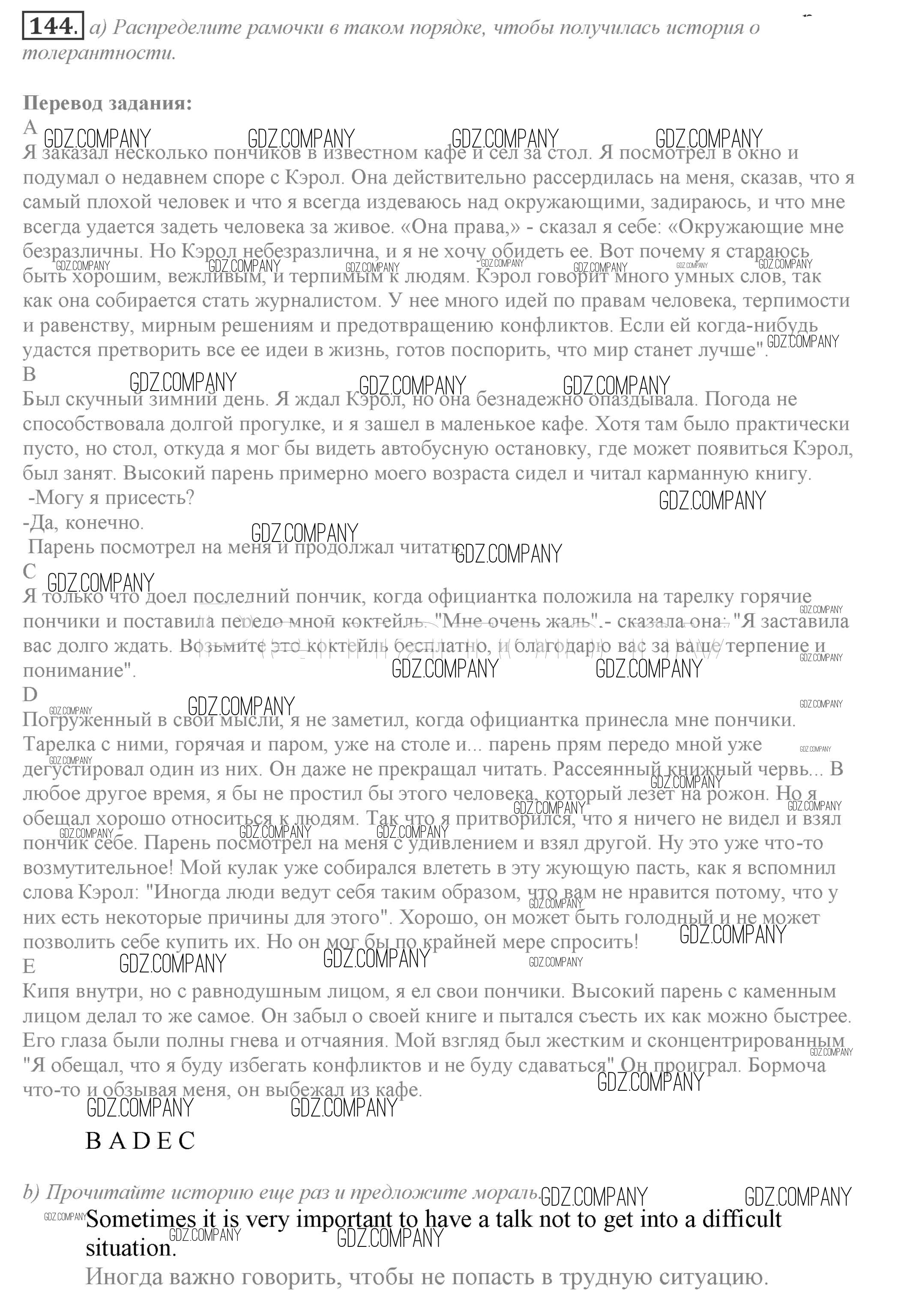 Здесь готовые ответы по Английскому языку за 9 (девятый) класс от Биболетова, Бабушис, Кларк, Морозова Учебник Enjoy English (издательство: Титул от 2014 г.) № 144