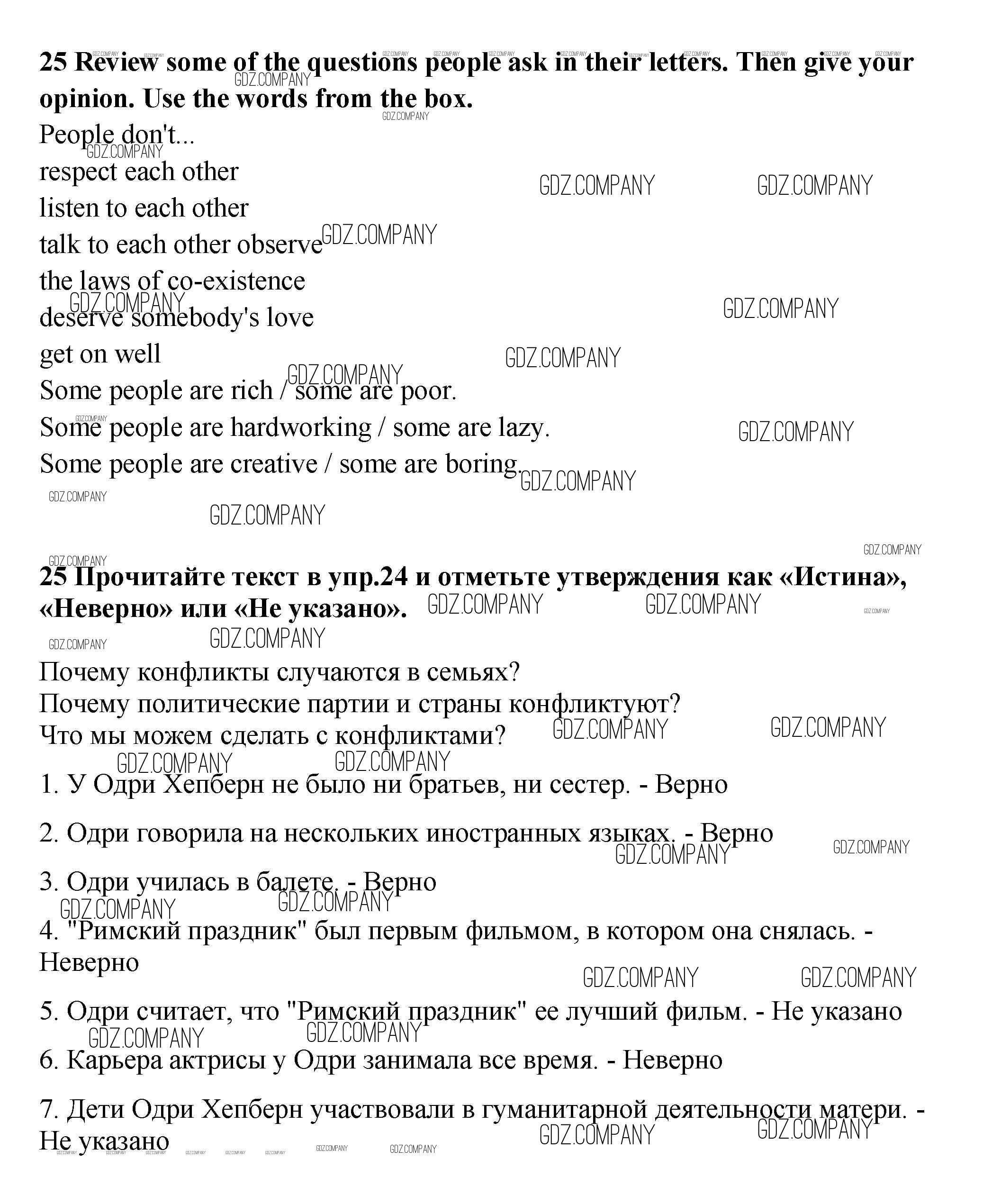 Здесь готовые ответы по Английскому языку за 9 (девятый) класс от Биболетова, Бабушис, Кларк, Морозова Учебник Enjoy English (издательство: Титул от 2014 г.) № 25