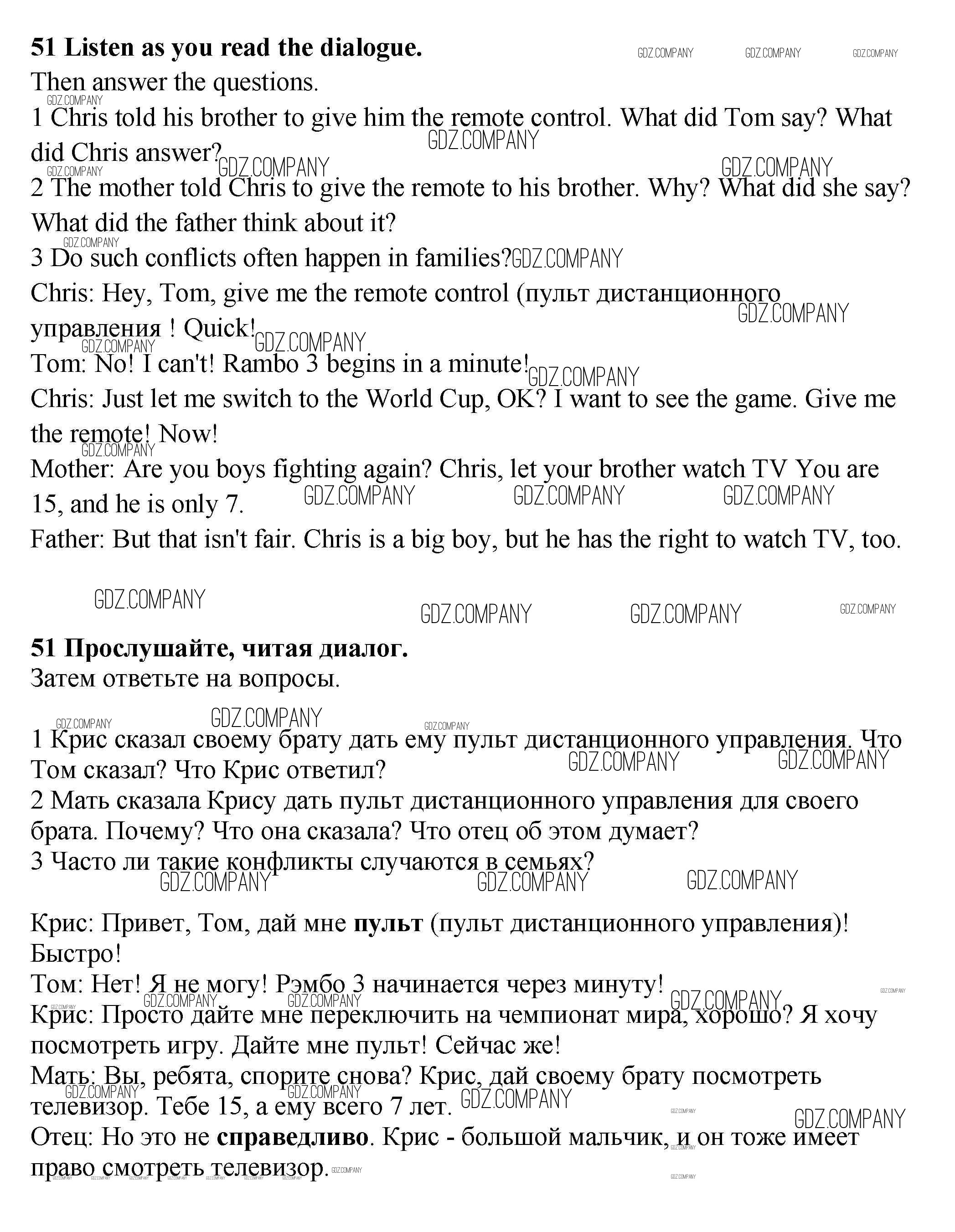 Здесь готовые ответы по Английскому языку за 9 (девятый) класс от Биболетова, Бабушис, Кларк, Морозова Учебник Enjoy English (издательство: Титул от 2014 г.) № 51