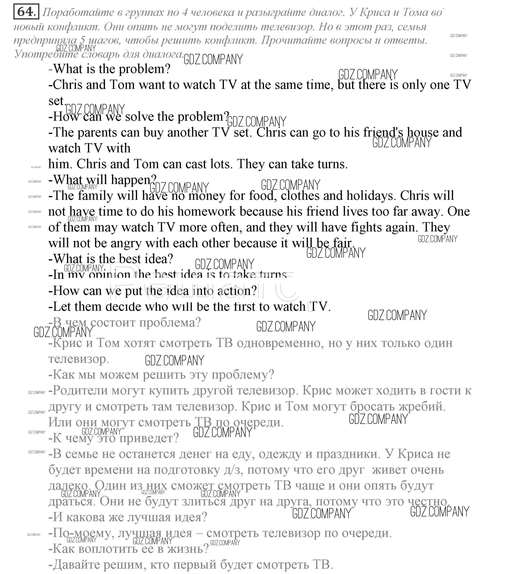 Здесь готовые ответы по Английскому языку за 9 (девятый) класс от Биболетова, Бабушис, Кларк, Морозова Учебник Enjoy English (издательство: Титул от 2014 г.) № 64