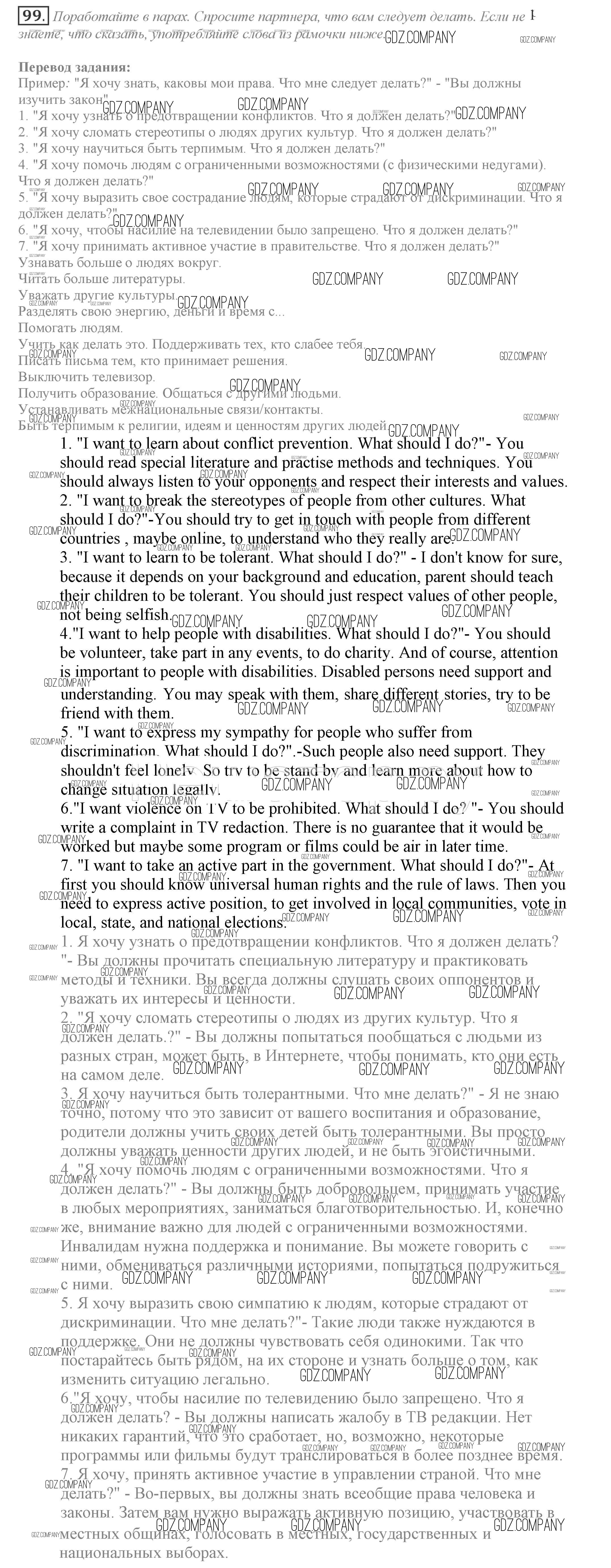 Здесь готовые ответы по Английскому языку за 9 (девятый) класс от Биболетова, Бабушис, Кларк, Морозова Учебник Enjoy English (издательство: Титул от 2014 г.) № 99