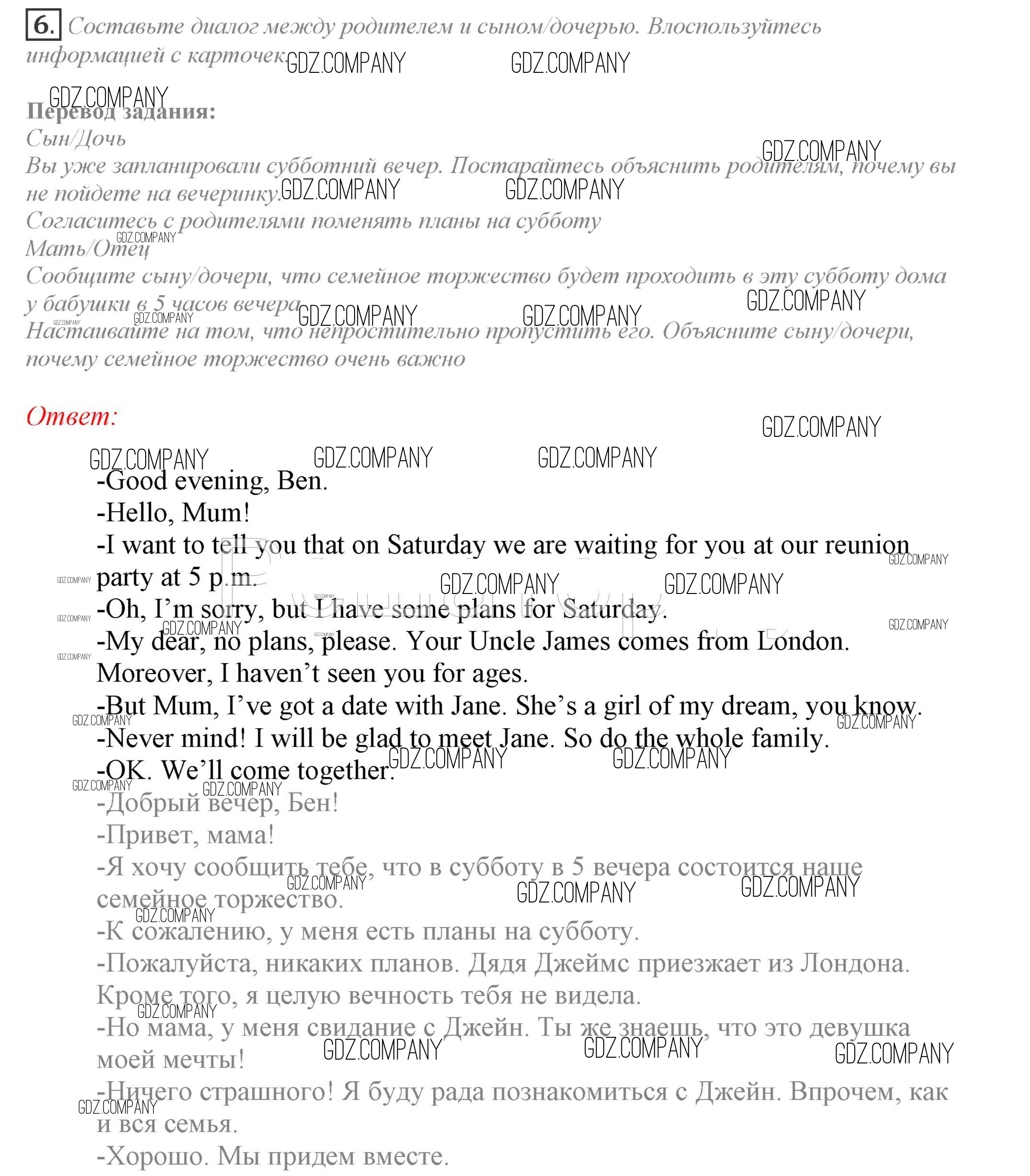 Здесь готовые ответы по Английскому языку за 9 (девятый) класс от Биболетова, Бабушис, Кларк, Морозова Учебник Enjoy English (издательство: Титул от 2014 г.) № 6