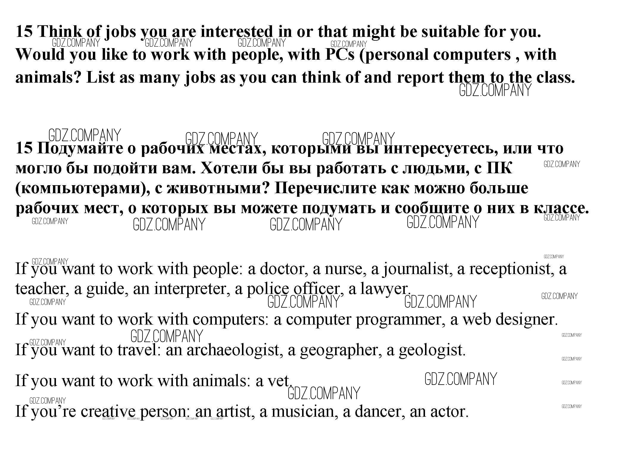 Здесь готовые ответы по Английскому языку за 9 (девятый) класс от Биболетова, Бабушис, Кларк, Морозова Учебник Enjoy English (издательство: Титул от 2014 г.) № 15