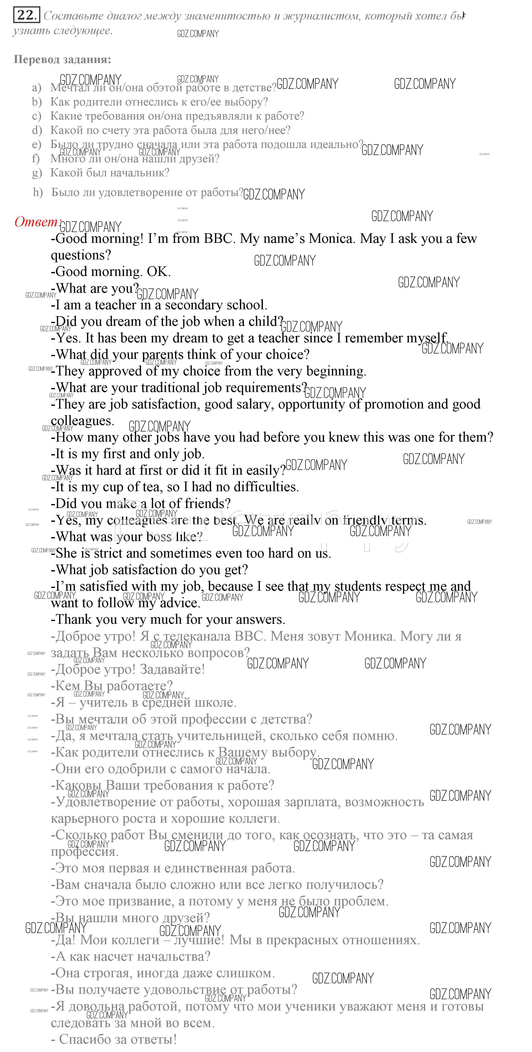 Здесь готовые ответы по Английскому языку за 9 (девятый) класс от Биболетова, Бабушис, Кларк, Морозова Учебник Enjoy English (издательство: Титул от 2014 г.) № 22