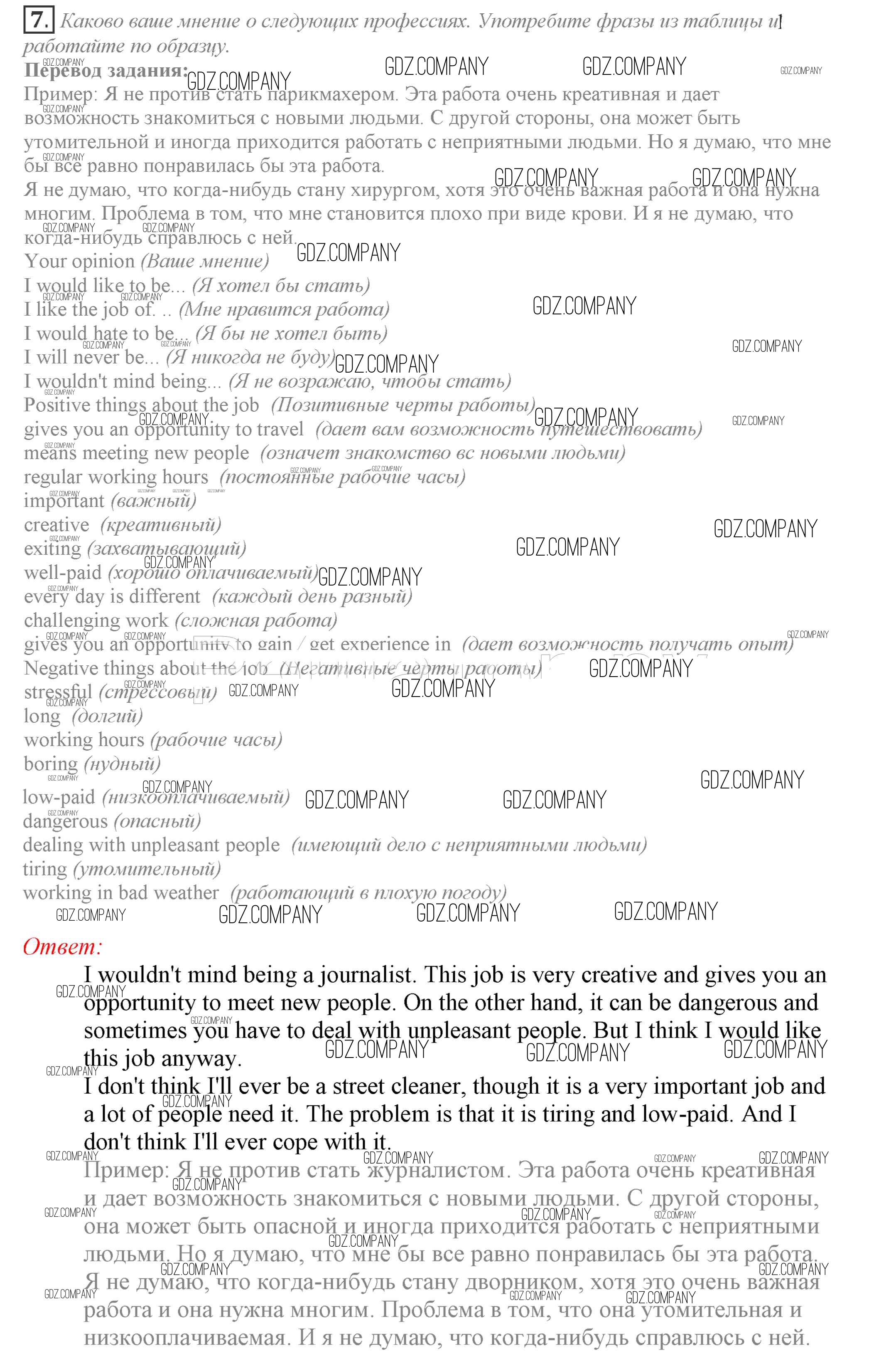 Здесь готовые ответы по Английскому языку за 9 (девятый) класс от Биболетова, Бабушис, Кларк, Морозова Учебник Enjoy English (издательство: Титул от 2014 г.) № 7